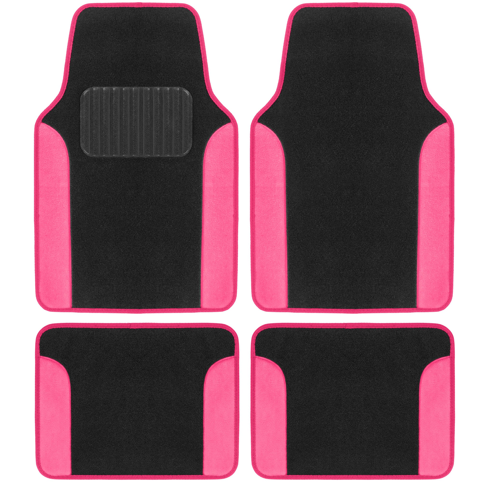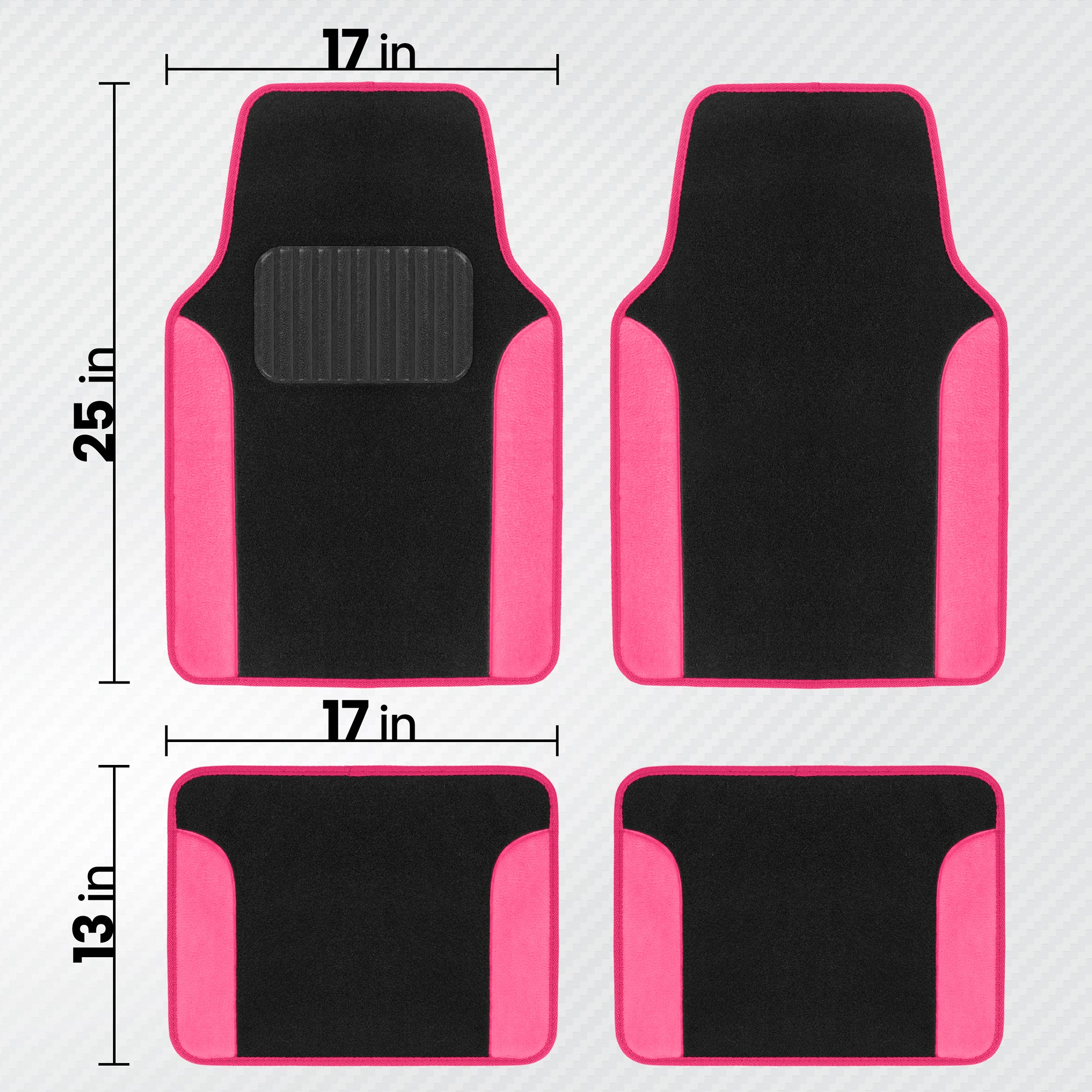 4-Piece Two-Tone Soft Carpet Front Floor Mats & Rear Floor Mats - Pink