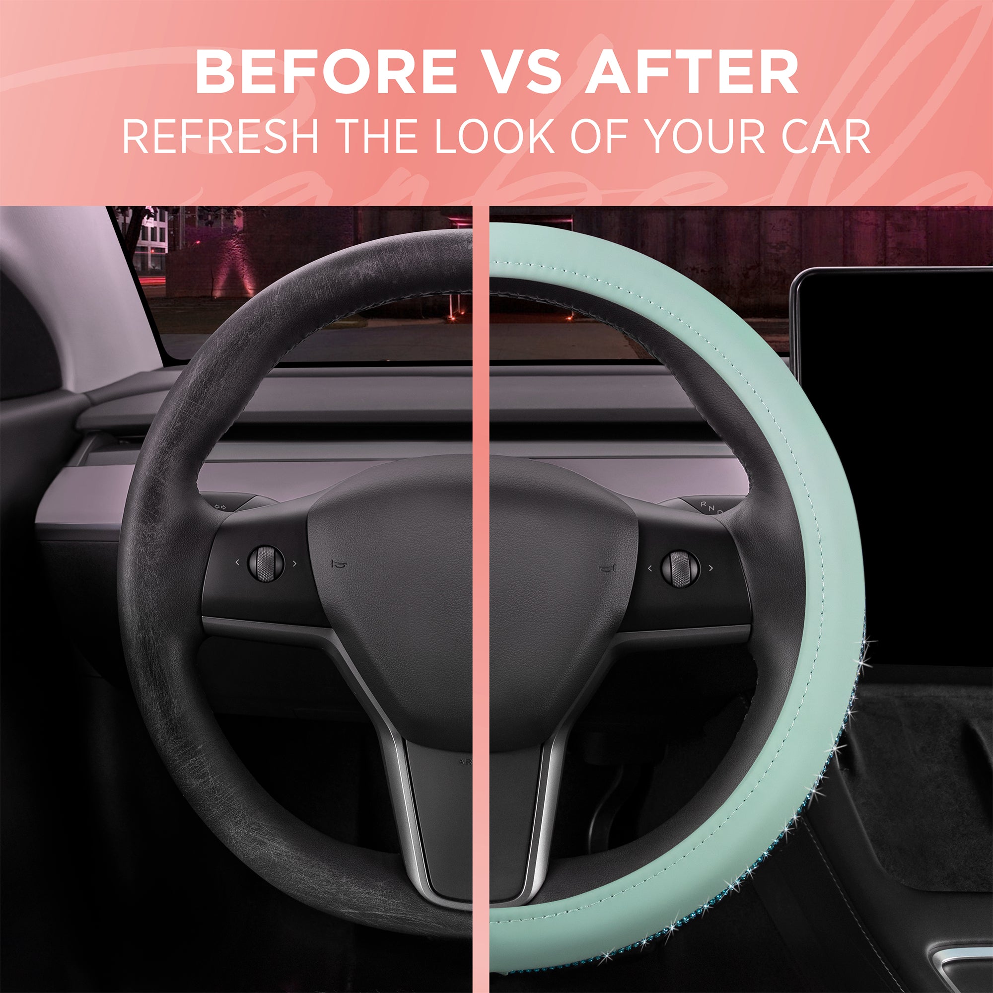 - REFRESH YOUR STYLE – You deserve better than to drive with an old, worn-out steering wheel. Revitalize your car interior with our cute pink faux leather steering wheel cover. It looks great and will help to protect your wheel against future wear and tear too!