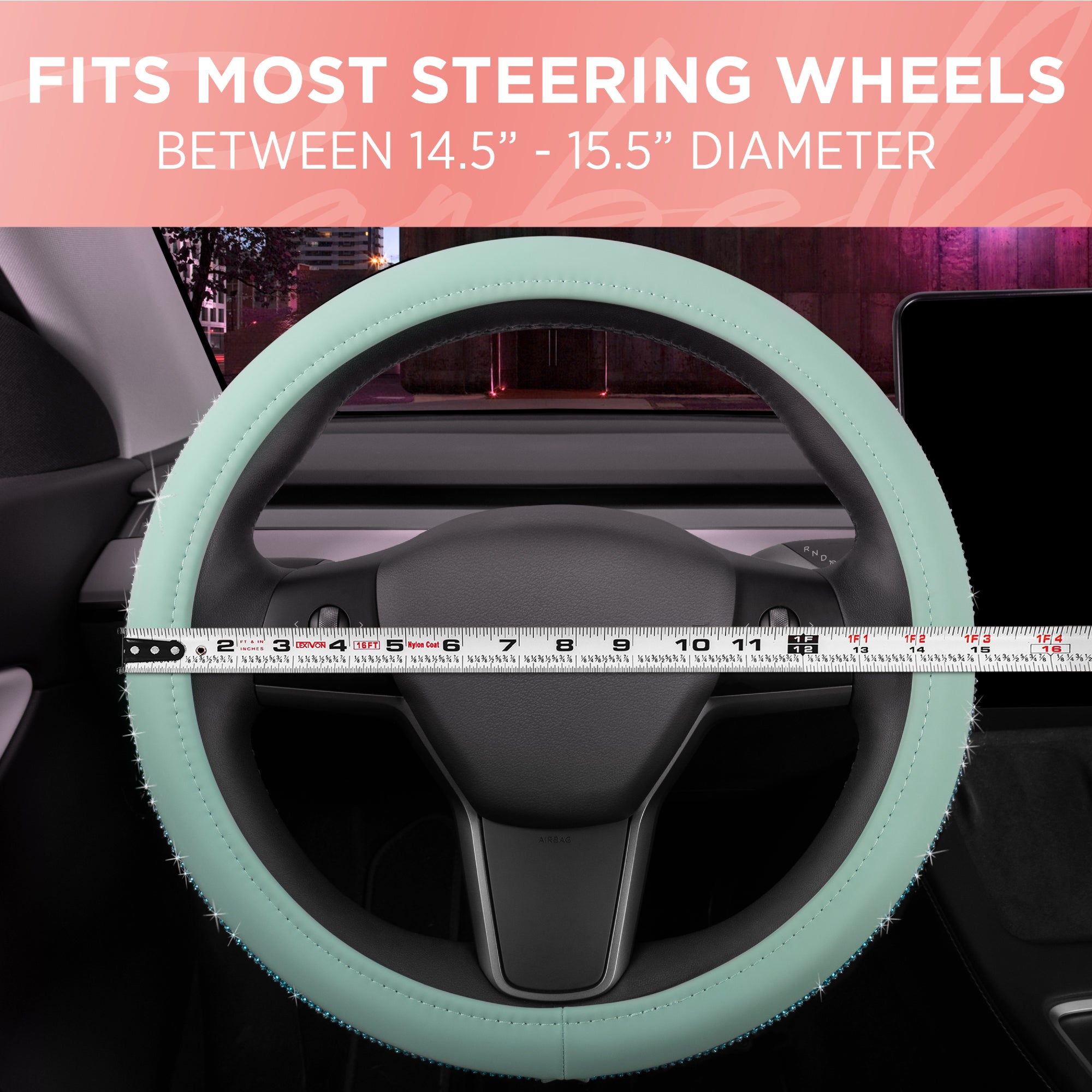 - FITS LIKE A GLOVE – From sedans to mini-vans, we designed this cover to fit on a wide range of vehicles. It's made for steering wheels with a diameter between 14.5 to 15 inches side-to-side. Measure your steering wheel first to ensure a good fit!