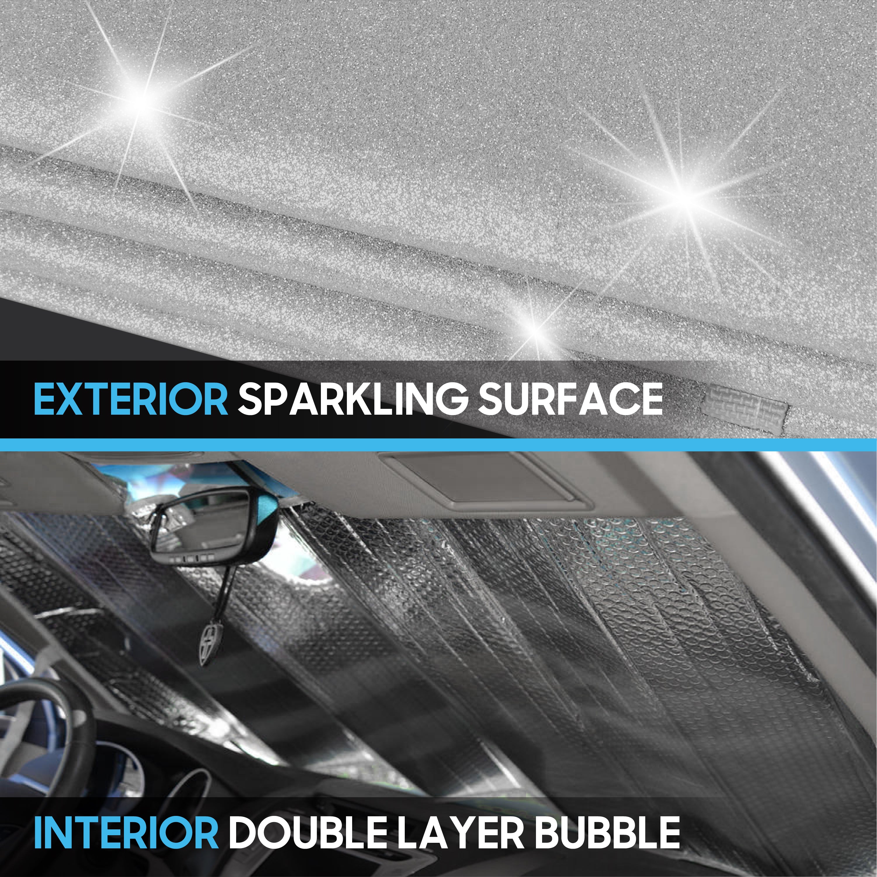 - 100% UV PROTECTION - Dual-Layer Bubble design for maximum protection for your vehicle's interior, keeping your seats and steering wheel cool by blocking the sun's heat and harmful UV radiation rays.