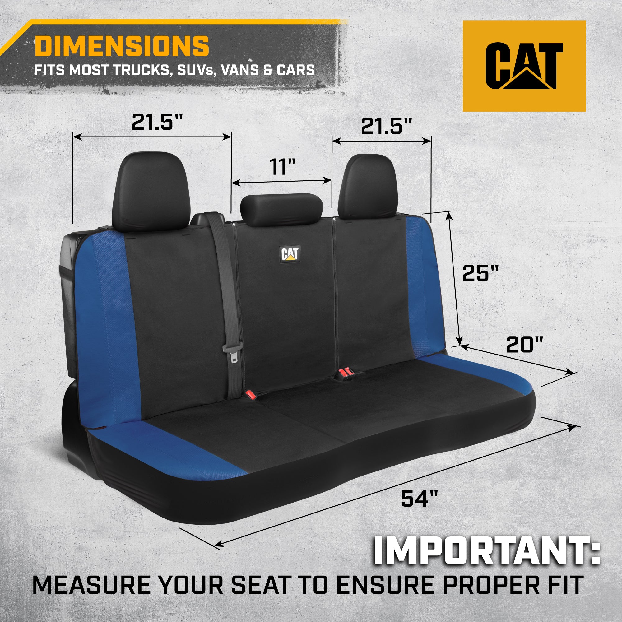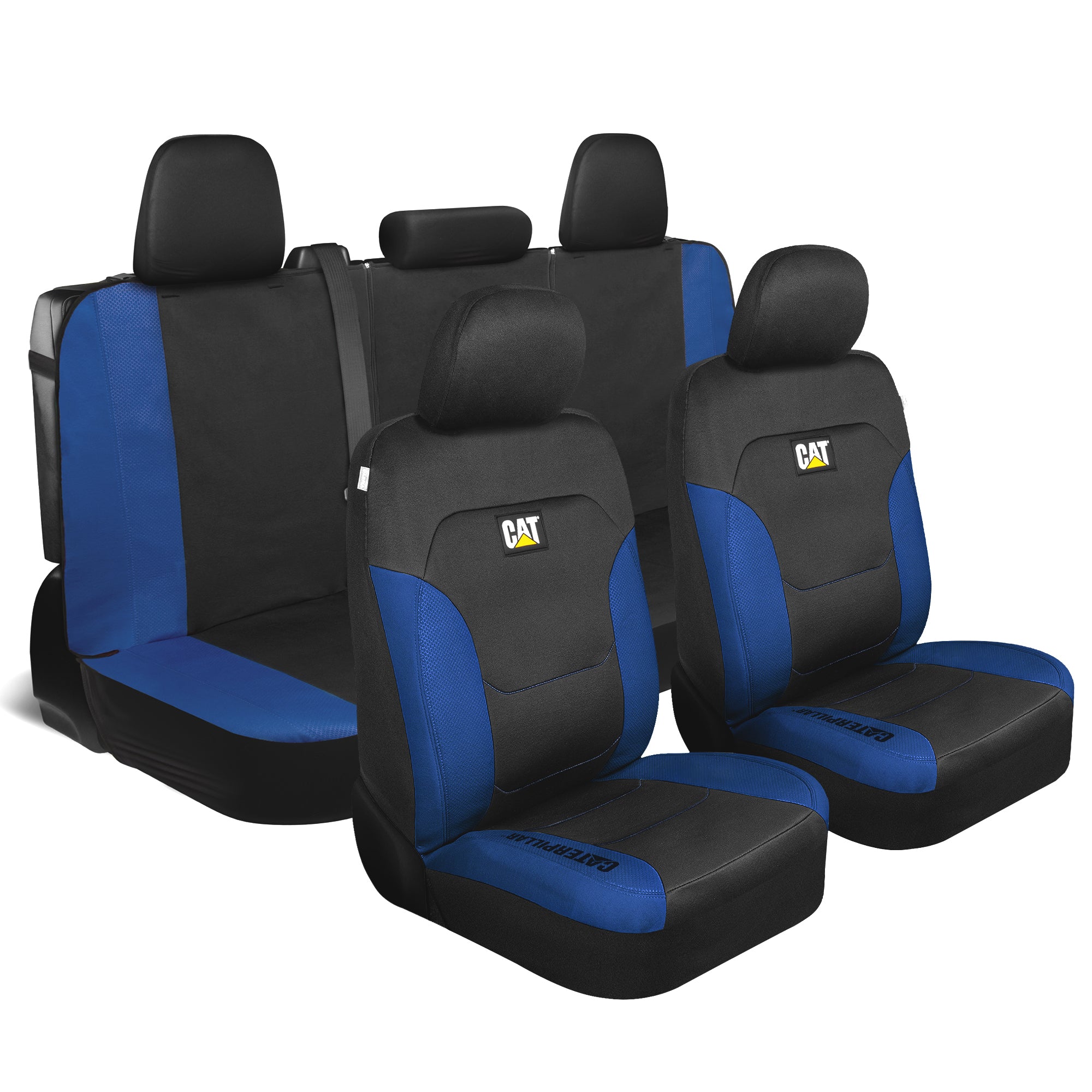 CAT Black & Blue Car Seat Covers Full Set – Front Seat Covers & Rear Bench Seat Cover – Airbag Compatible, 60/40 Split Bench for Trucks, Cars & SUVs – Automotive Interior Seat Protection Accessories --Alias 639034902231350473