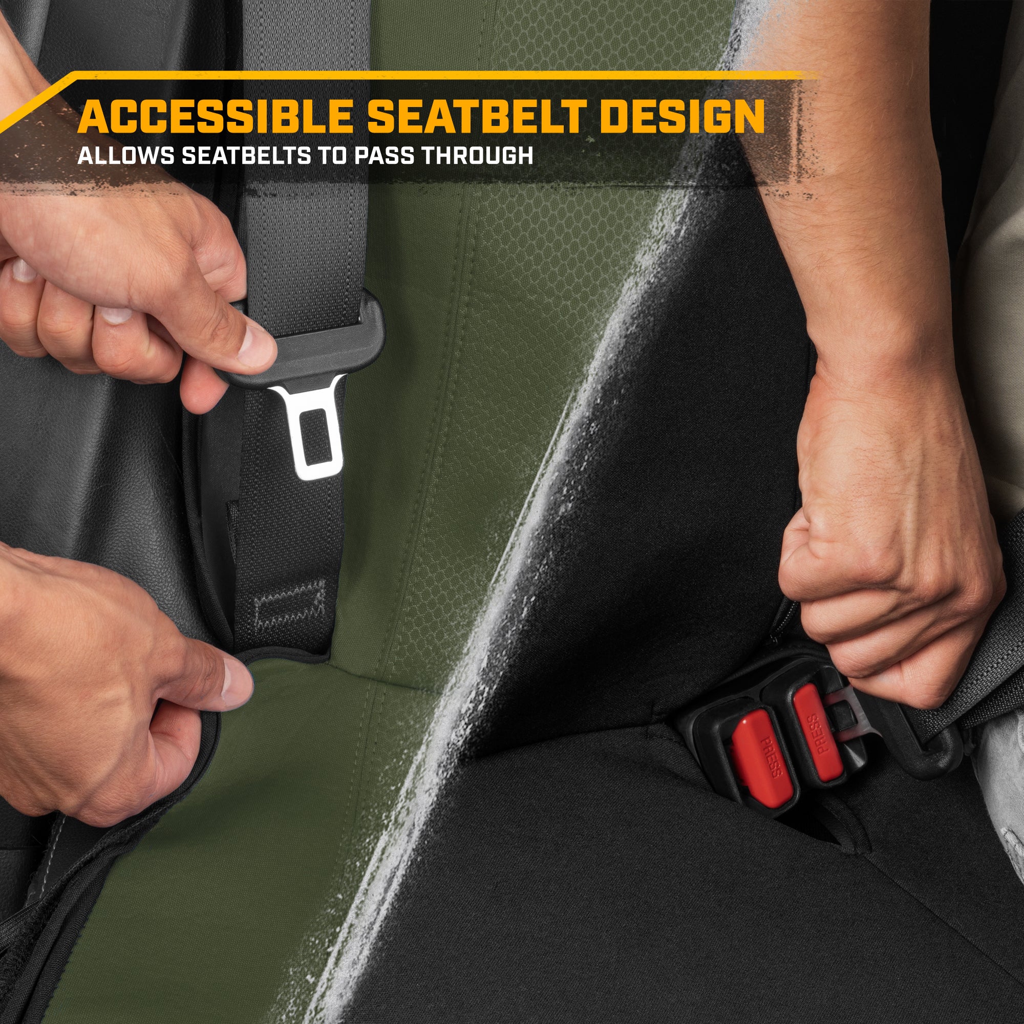 CAT Black & Green Car Seat Covers Full Set – Front Seat Covers & Rear Bench Seat Cover – Airbag Compatible, 60/40 Split Bench for Trucks, Cars & SUVs – Automotive Interior Seat Protection Accessories --Alias 639034939414390519